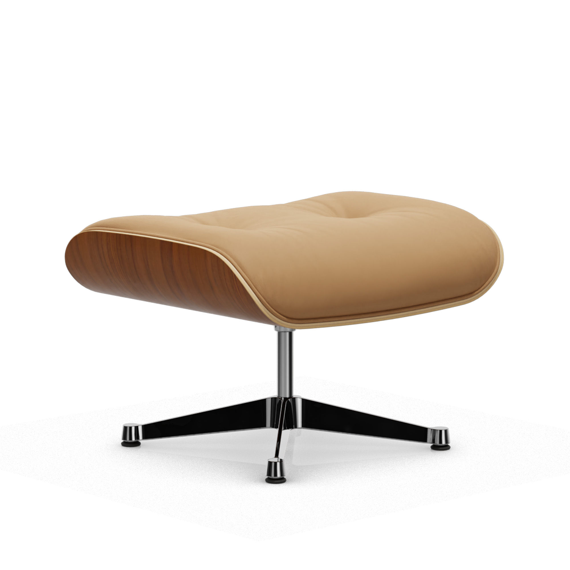 Vitra - Eames Lounge Ottoman Natural Chestnut Leather Natural Dark Sand 78 Polished Aluminium/Deep Black - Fotpallar - Charles & Ray Eames - Läder/Metall/Trä