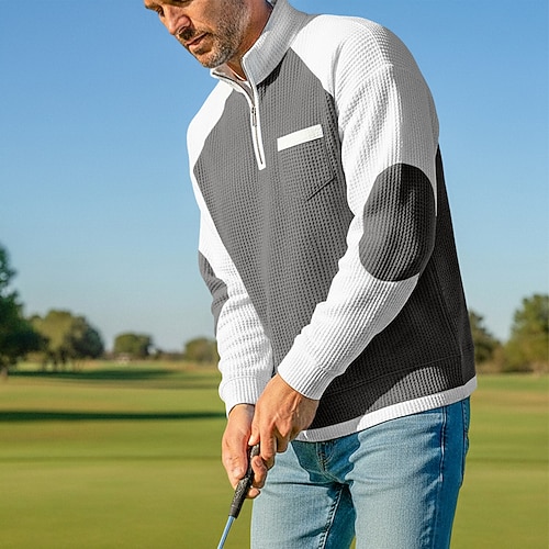 Per uomo Maglietta Polo con zip Maglietta tattica Camicia a Maniche Lunghe Manica Lunga Zip a un quarto Colletto fasciato Primavera Autunno Blocco di colori Quotidiano Casual Stile da Strada Tasca