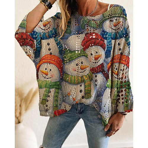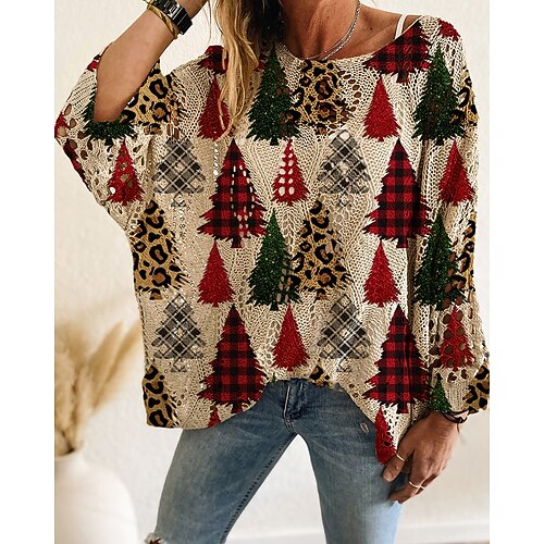 maglione da donna pullover vintage regalo di Natale maglione brutto moda grafico spalle scoperte traforato lavorato a maglia stampa manica a pipistrello manica lunga top normali maglia quotidiano festa blu vino rosso autunno inverno
