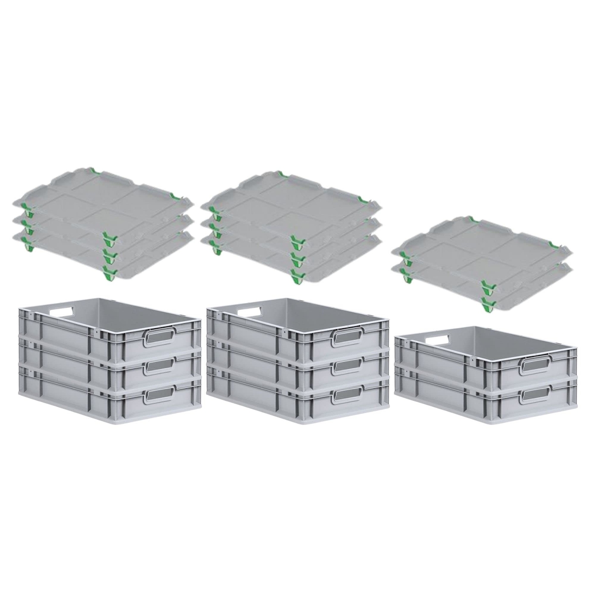 PROREGAL SparSet 5x Eurobox NextGen Economy mit Auflagedeckel & 4x Verschlüsse Gelb, Griffe offen, HxBxT 17x30x40cm, 16L, Eurobehälter, Box