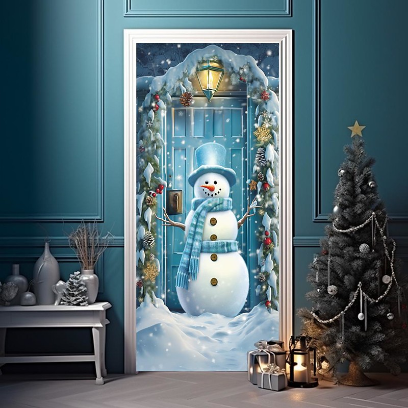 Christmas Door Decorations Snowman Door Covers Door Tapestry Door Curtain Decoration Xmas Backdrop Door Banner for Front Door Holiday Party Decor Supplies