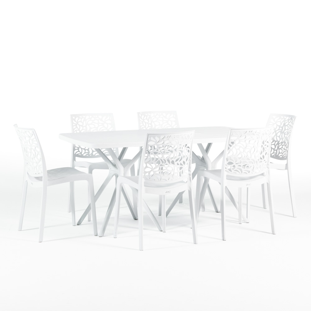 RATTATAN GARTEN-ESSSET OLIVER + 6 STÜHLE ANNA aus Harz mit Glasfaser, modernes und robustes Design, ideal für Garten, Terrasse oder Veranda – Weiß