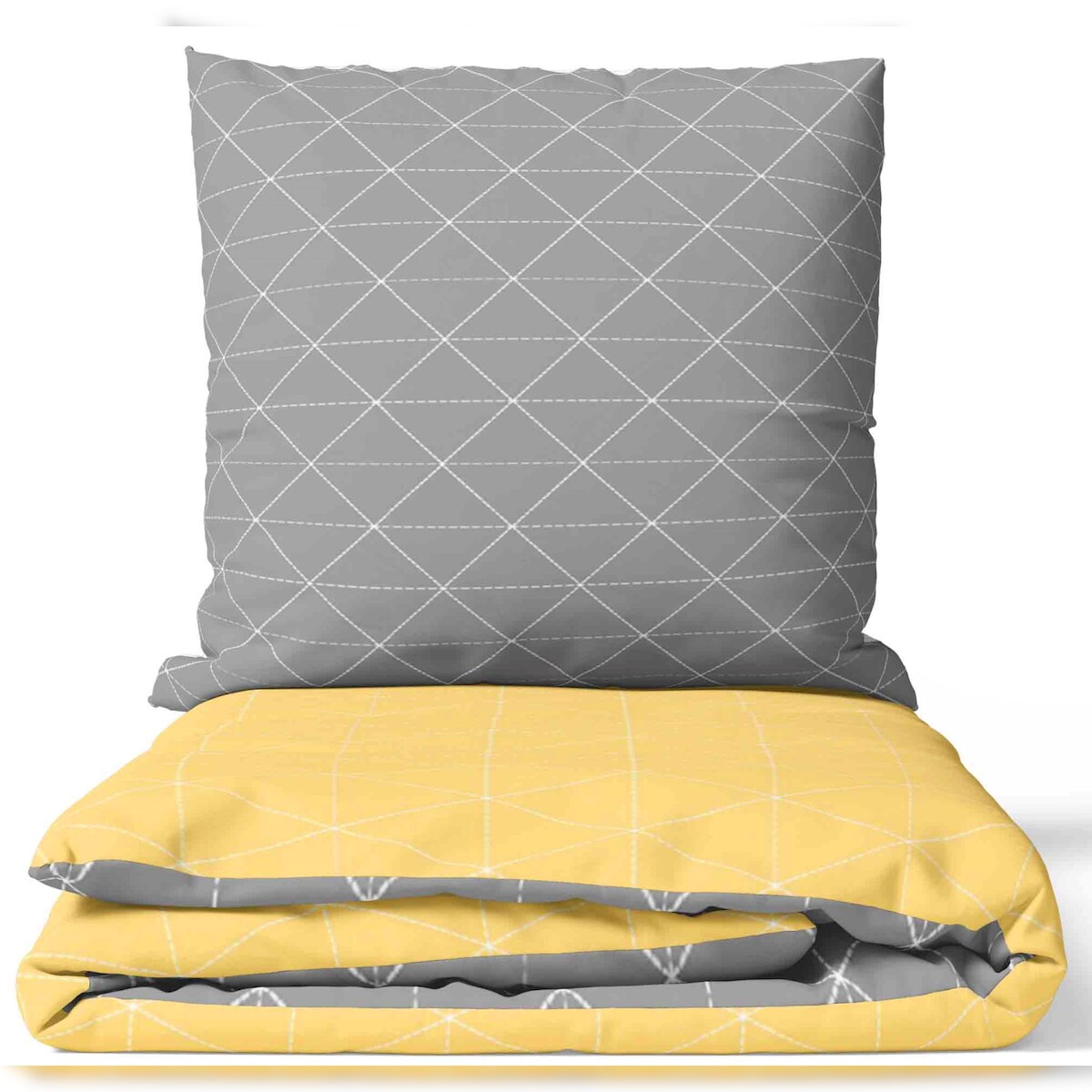 Leonado Vicenti Wendebettwäsche 100% Baumwolle 200 x 220 cm Gelb Grau Raute 3 teilig