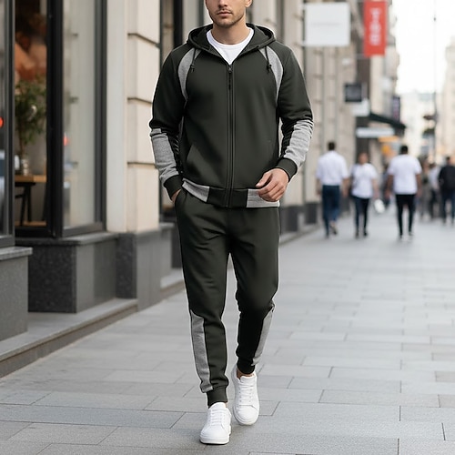 Per uomo Felpa Tuta Da Ginnastica Tuta da ginnastica Nero Verde militare Rosso Blu marino Grigio chiaro Con cappuccio Liscio A cordoncino 2 pezzi Sportivo Giornaliero Per eventi Streetwear Essenziale