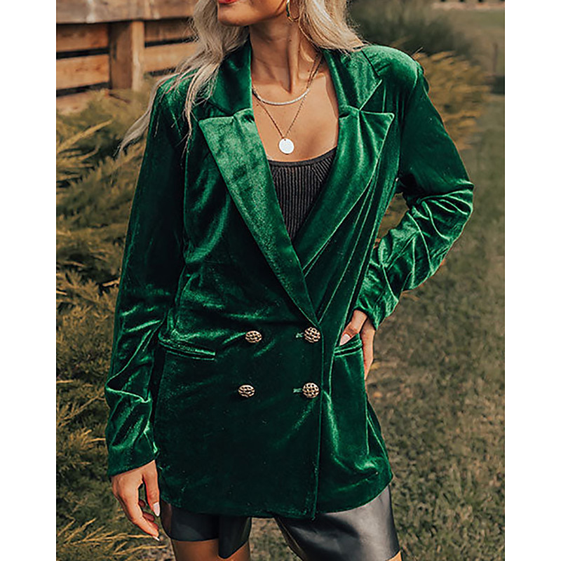 Women's Velvet Blazer Comfortable Buttons Elegant Stylish Retro Vintage Work Plain Work Daily Holiday Going out V Neck Loose Fit Long Sleeve Outerwear Black Wine Green Spring Fall