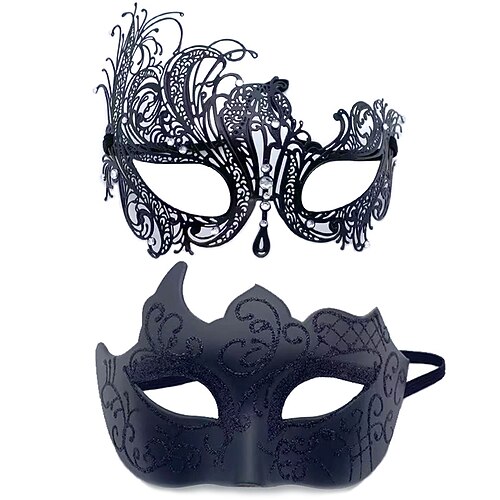 Halloween Ball Party Mask Retro Prince Flat Head Mask Antique Bronze Half Face Mask Black Decorative Men's and Women's