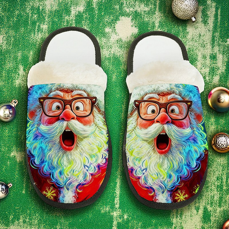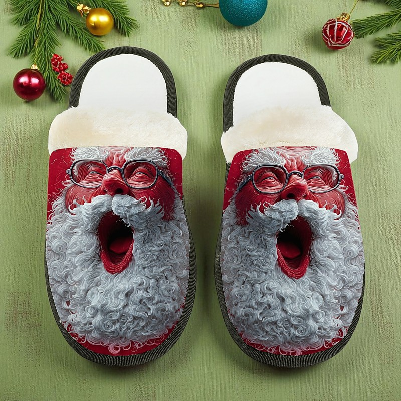 Men's Santa Claus Slippers - Fun Christmas Footwear with 3D Santa Face, Soft Plush Lining, Ideal for Holiday Relaxation Winter Festivities