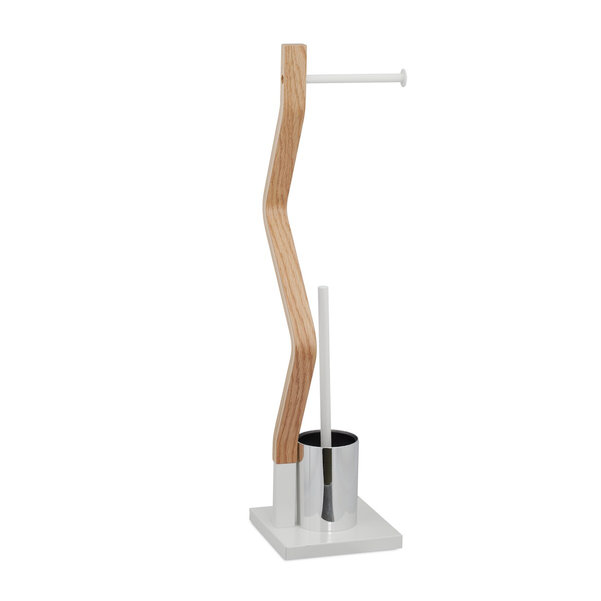 Relaxdays WC Garnitur stehend, Holz und Stahl, Toilettenpapierhalter mit Bürste, HBT 75 x 18,5 x 18,5 cm, weiß/natur