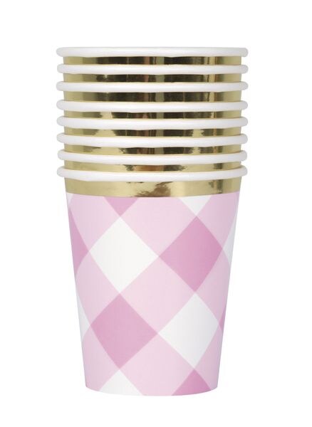 8 Becher 1. Geburtstag Vichy Karo rosa Folie