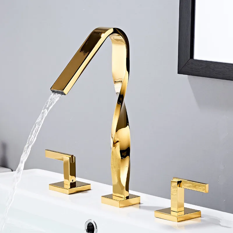 Rubinetto per lavabo a 2 maniglie diffuso con tubi di alimentazione del rubinetto Rubinetti miscelatori per lavabo in metallo dorato/grigio canna di fucile
