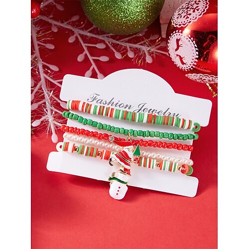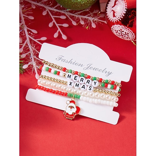 braccialetti natalizi con perline da donna, in lega e acrilico, nei colori festivi rosso, verde e bianco, gioielli natalizi con fiocchi di neve, ciondoli a forma di Babbo Natale e albero di Natale