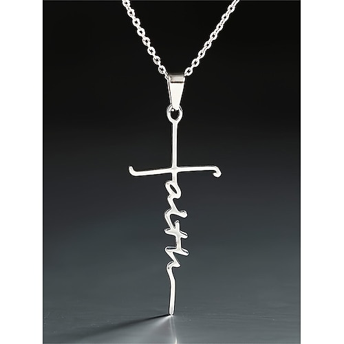 collana da uomo con ciondolo a croce in lega con design fede, disponibile nei colori oro e argento, perfetta per abbigliamento religioso e casual