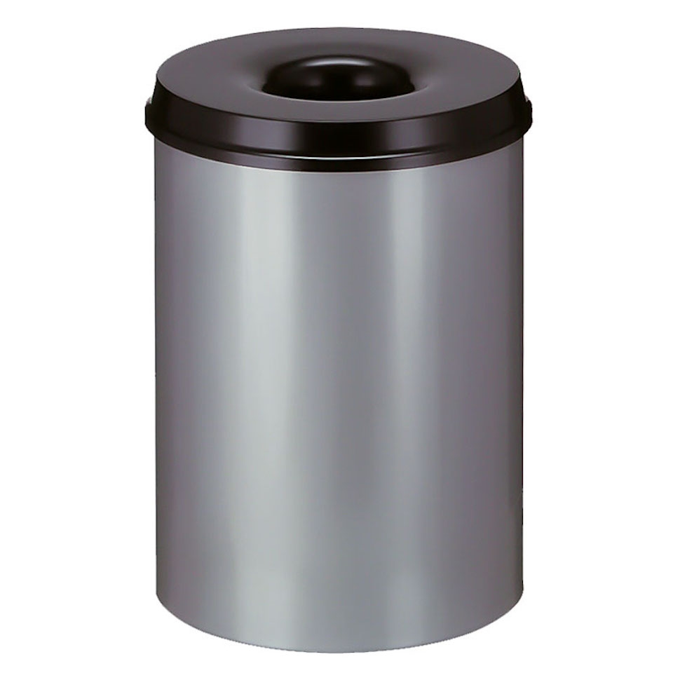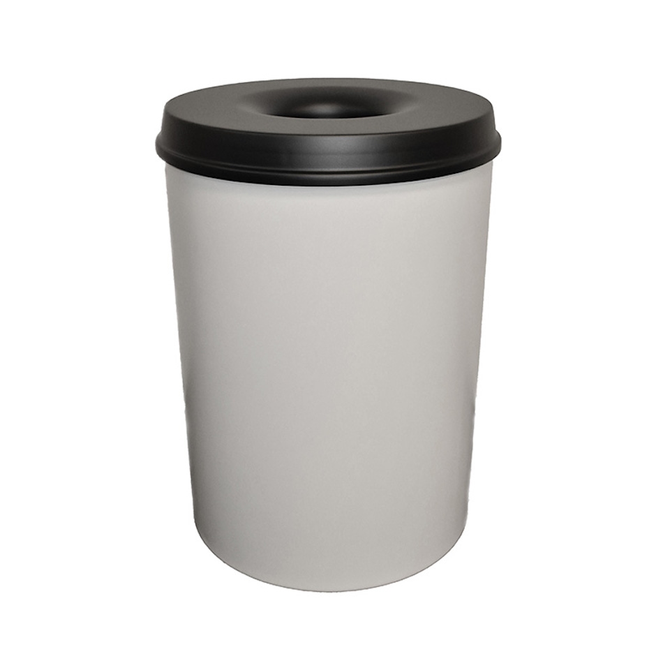PROREGAL Selbstlöschender Papierkorb & Abfallsammler aus Metall | 30 Liter, HxØ 47x33,5cm | Grau, Kopfteil Schwarz