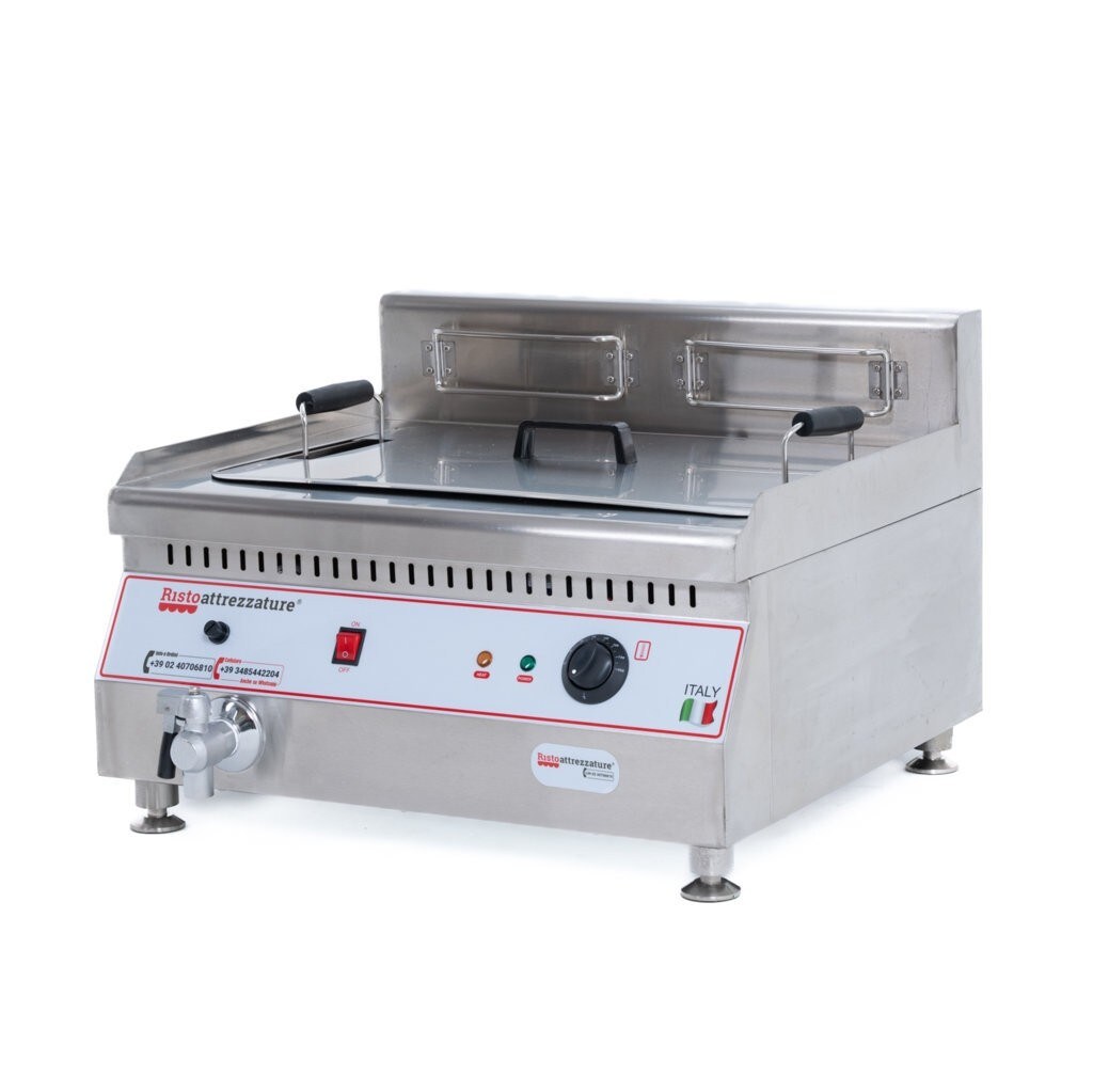 Ristoattrezzature Elektrische Fritteuse mit einer Wanne, professionell, aus Edelstahl – mit Ablasshahn – 30 Liter, Ölkapazität 23 Liter