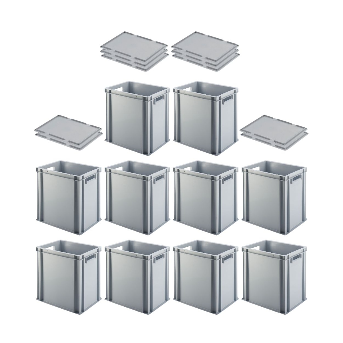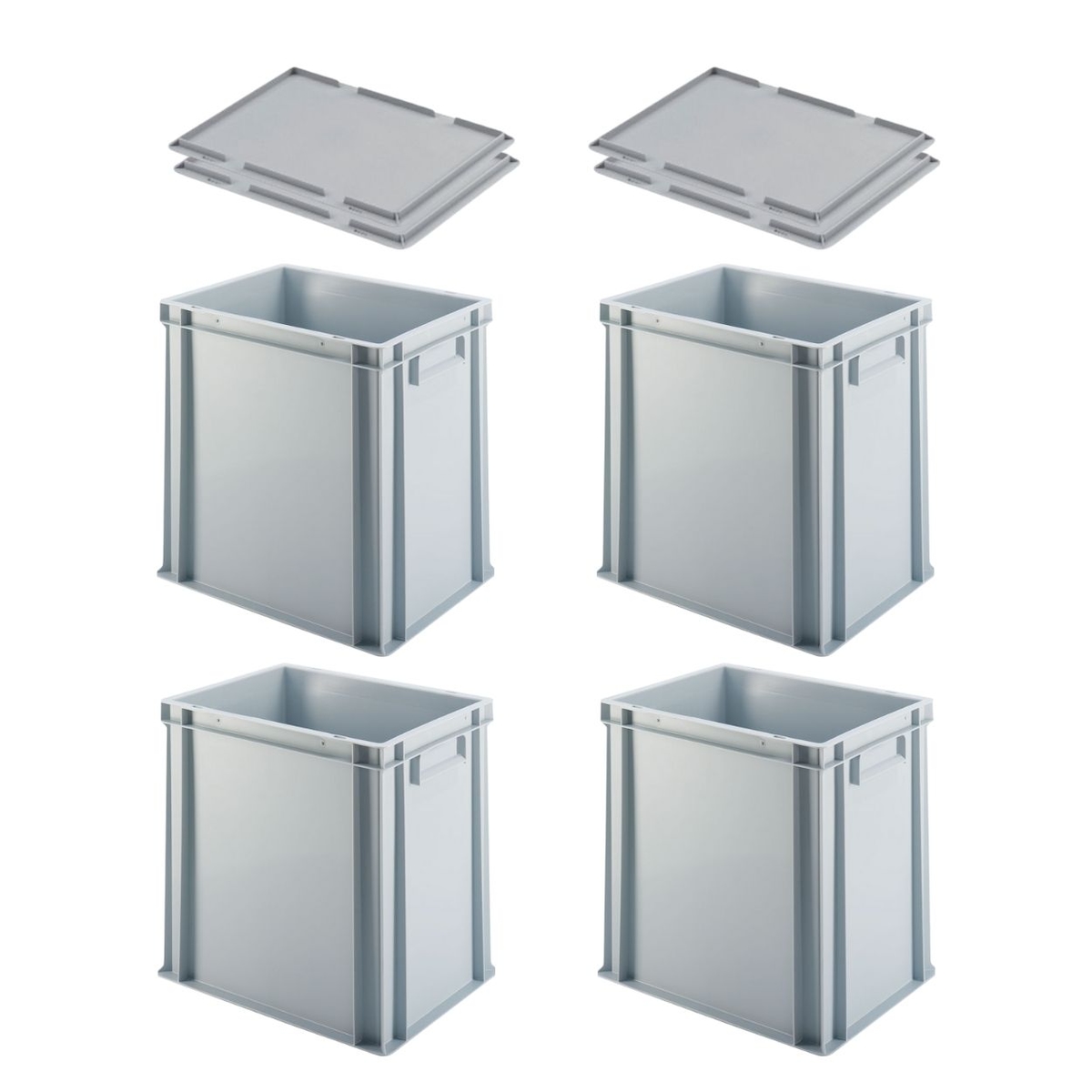 PROREGAL 4x Eurobehälter mit geschlossenem Griff & Auflagedeckel | HxBxT 40x30x40cm | 37 Liter | Grau | Eurobox
