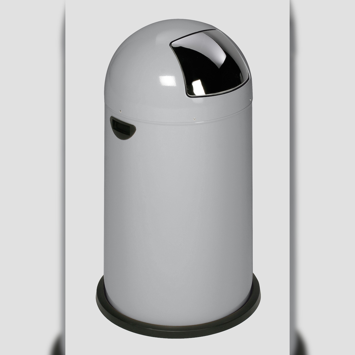 PROREGAL Klassischer Abfallbehälter mit Pushdeckel | 30 Liter, HxBxT 56x31x31cm | Metall | Metallik Grau