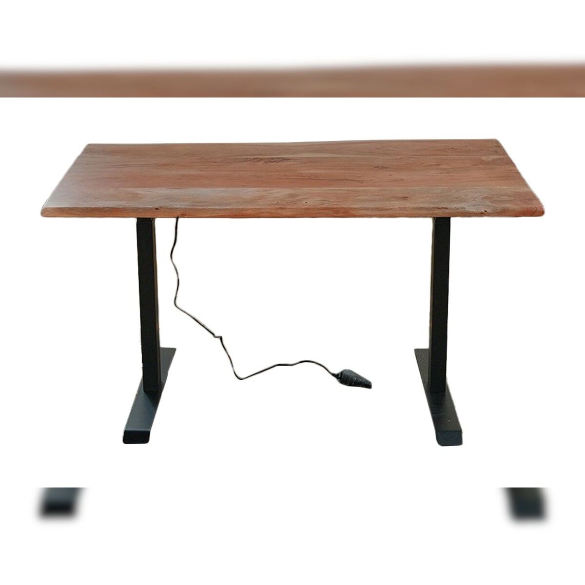 KAWOLA Schreibtisch LORA elektrisch höhenverstellbarer Schreibtisch 120x80cm mit Baumkante Nussbaumfarben massiv