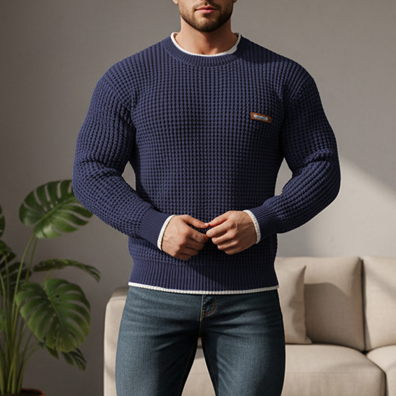 Men's Pullover Sweater Jumper Casual Sweater Knit Sweater Ribbed Waffle Knit Tunic Knitted Plain Crewneck Fashion Casual Vacation Daily Wear Clothing Apparel Fall Winter Black Royal Blue S M L