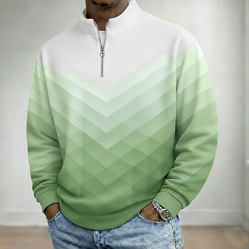 Per uomo Sfumatura Polo Manica Lunga Colletto Mao Athleisure Vacanza Athleisure Casual Quotidiano Cerniera Stampa 3D Primavera Autunno Blu Rosa Marrone chiaro