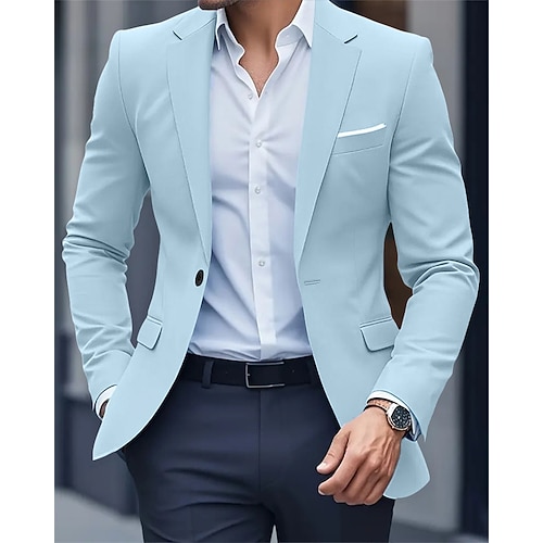 Per uomo Blazer Affari Cocktail party Ricevimento di matrimonio Moda Casual Primavera Autunno Poliestere Semplice Tasca Bottoni Confortevole Monopetto Giacca Nero Blu marino Azzurro cielo