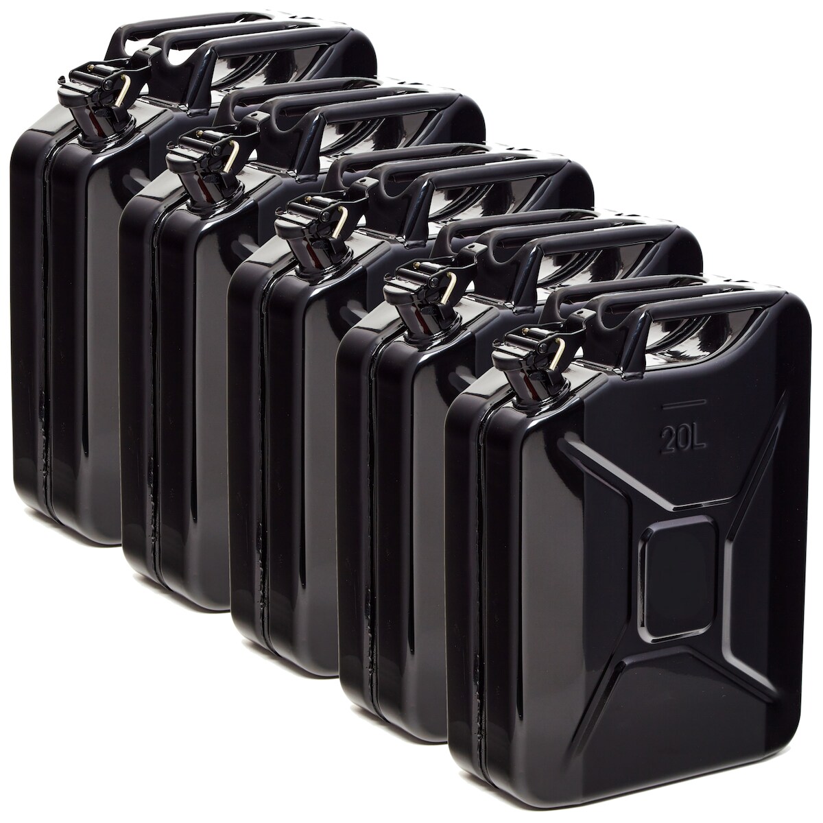 BW® Kraftstoffkanister Metall Benzinkanister 5x 20 Liter - Schwarz - RAL 9005 - TÜV-geprüft und UN-Zulassung - Made in Europe
