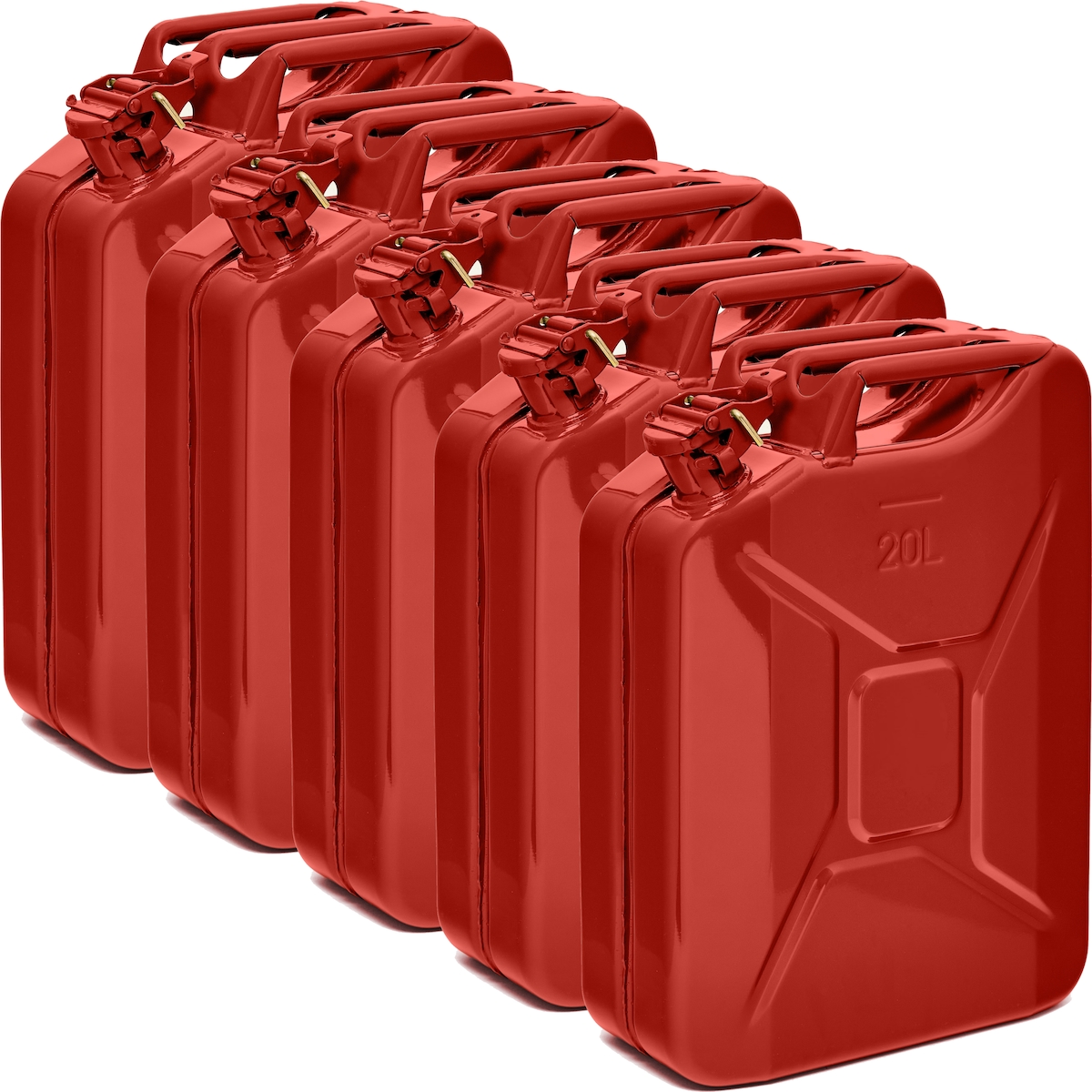 BW® Kraftstoffkanister Metall Benzinkanister 5x 20 Liter - Rot - RAL 3000 - TÜV-geprüft und UN-Zulassung - Made in Europe