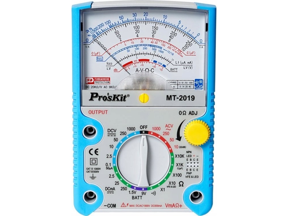 Multimeter 0,1-1000V AC/DC, 0,05-250mA DC, mit Widerstands- und Kapazitätsmessung, Transistor, Diode, Schaltungsprüfung, Pro'sKit