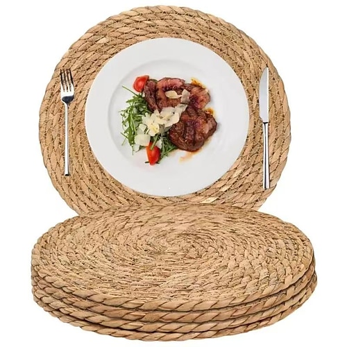 Set di 5 tovagliette rotonde in rattan, tovagliette da 13 pollici con motivo a ninfee intrecciate a mano, per tavolo da pranzo, tovagliette in stile rustico per decorazioni per la casa e per