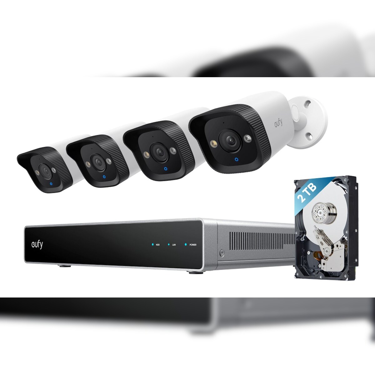 eufy PoE NVR CCTV Security System E41 (6 PoE Cam E41 Kit) + Video Doorbell E340 (Wi-Fi Connection) + 2 TB HDD
