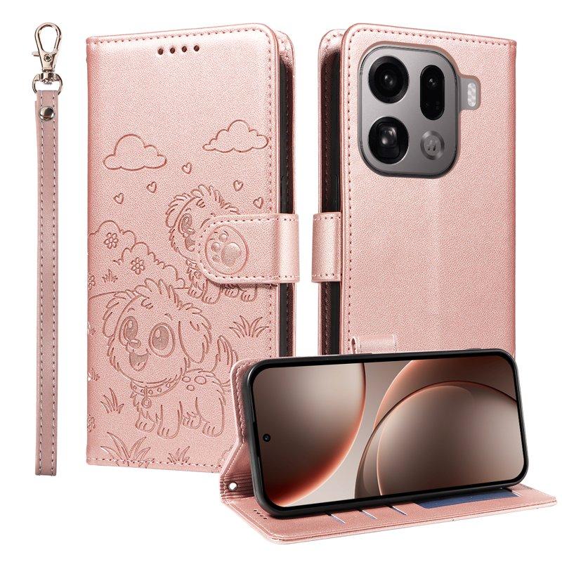 Oppo Find X9 Pro 5G Plånboksfodral Konstläder Ställ - Rosa