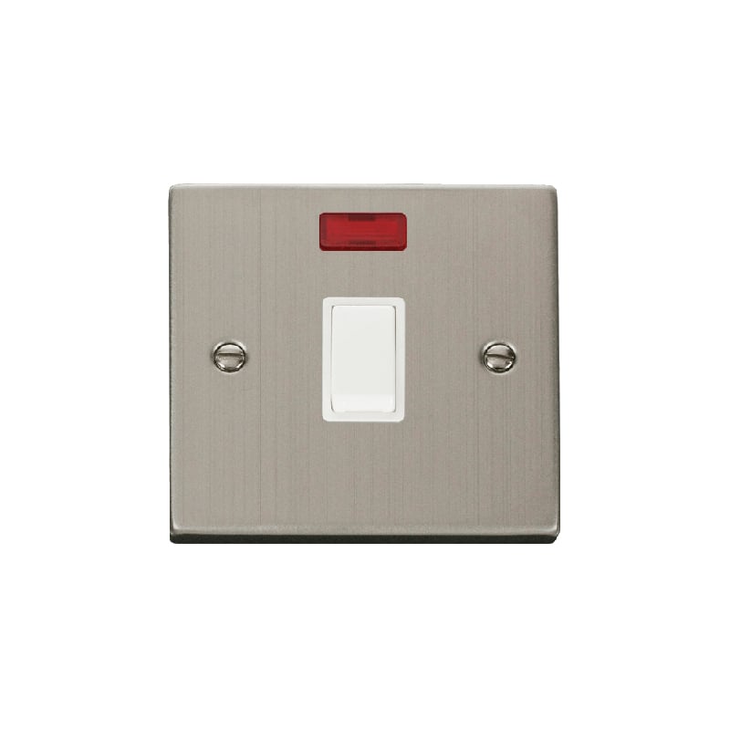 Click Deco 20A 1 Gang DP Switch with Neon Stainless Steel Insert White