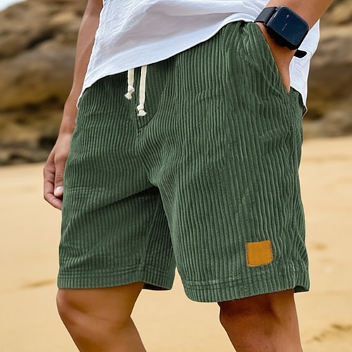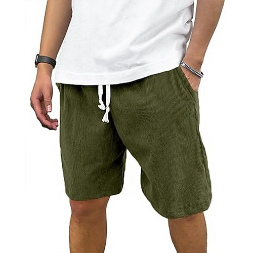 Per uomo Pantaloncini Estivi Shorts da Spiaggia Pantaloncini casual Pantaloncini di velluto a coste Coulisse Elastico in vita Tinta unica Comodità Lunghezza al ginocchio Quotidiano All'aperto Ferie