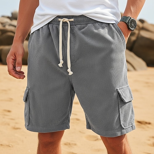 Per uomo Pantaloncini cargo Pantaloncini Estivi Shorts da Spiaggia Pantaloncini casual Pantaloncini di velluto a coste Coulisse Elastico in vita Multi-tasche Tinta unica Comodità Lunghezza al