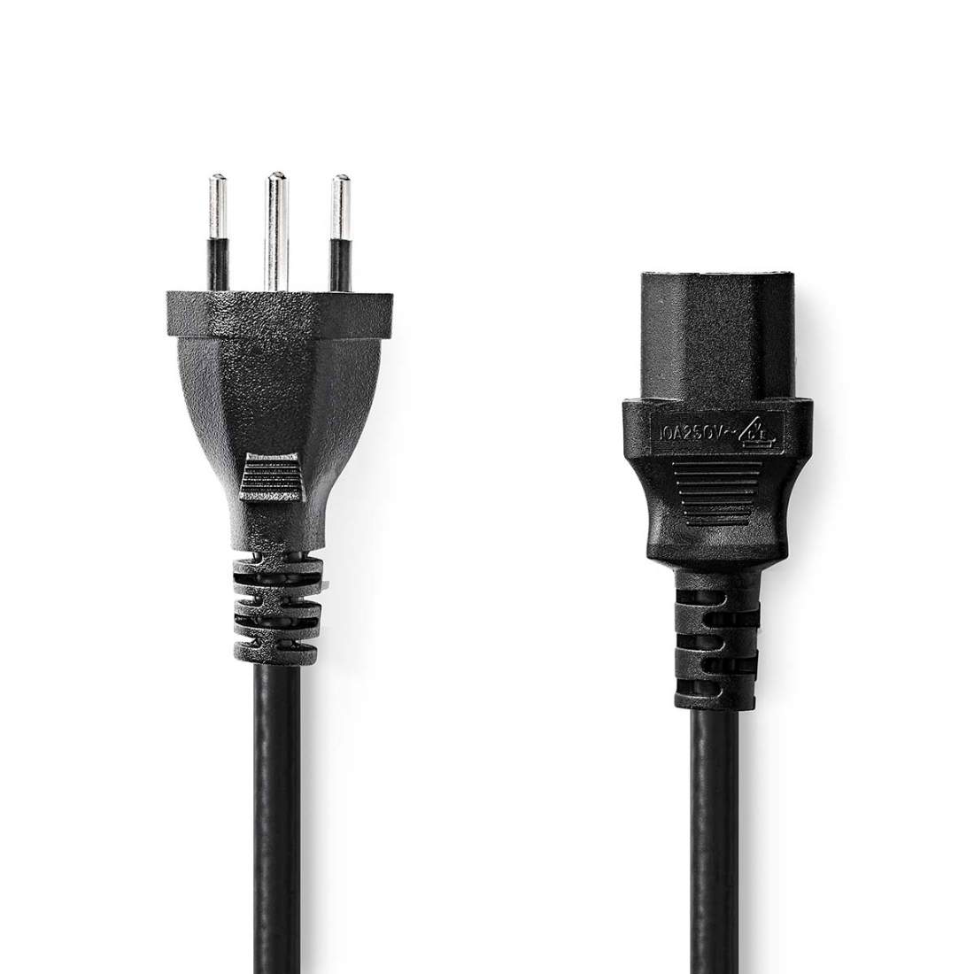 Sähköjohto | CH Type 12 | IEC-320-C13 | Suora | Suora | Niklattu | 2.00 m | Pyöreä | PVC | Musta | Label