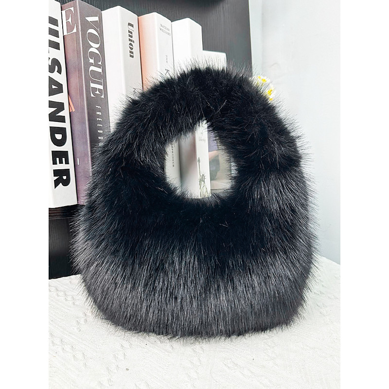 Women's Handbag Shoulder Bags Faux Fur Christmas Party Casual Zipper Lightweight Solid Color Almond Black Pink