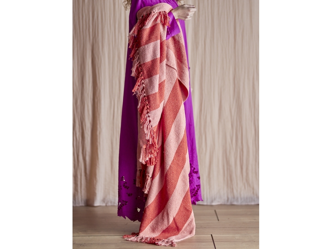 Plaid 125x150 cm bomuld firkanter lyserød