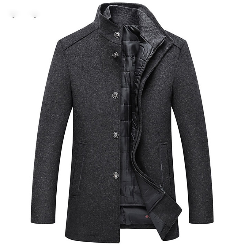 Men's Winter Coat Wool Coat Overcoat Daily Wear Going out Winter Fall POLY Thermal Warm Outdoor Outerwear Clothing Apparel Fashion Warm Ups Solid Colored Pocket Stand Collar Single Breasted