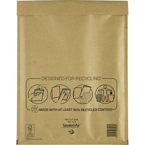 Mail Lite Luftpolster-Luftpolster-Versandtaschen H/5 Gold Ohne Fenster 270 (B) x 360 (H) mm Abziehstreifen 79 g/m² 50 Stück