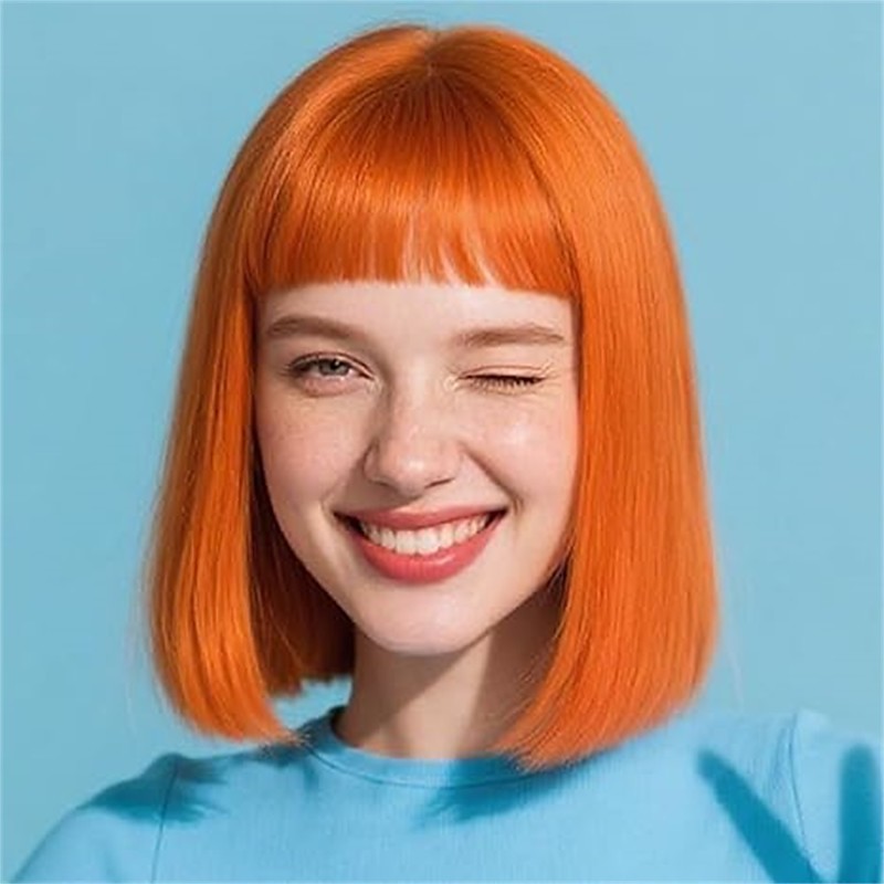 Carnival Wig Pink Red Blue Straight Bob Short Synthetic Festival Wig Mardi Gras Parade Cosplay Costume Hair for Women