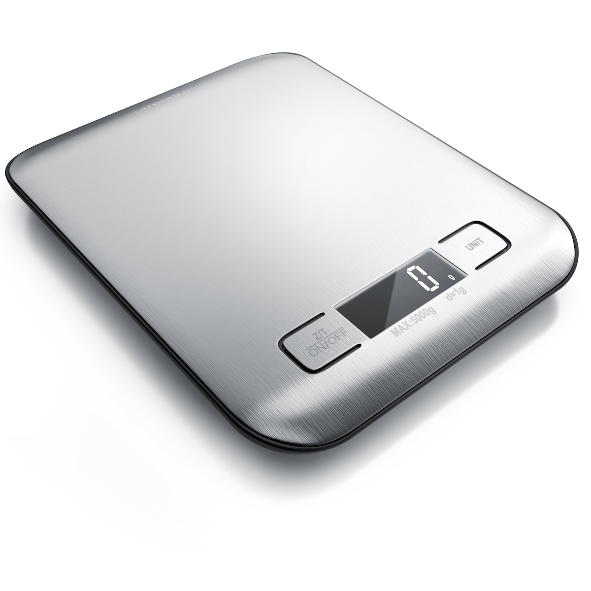 Arendo Edelstahl Küchenwaage - 18 x 14 cm - bis 5 kg Messgenauigkeit 1 g | Weißes LED Display