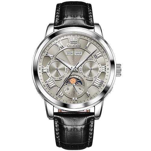 OLEVS Da uomo Orologio meccanico Creativo Lusso Moda Affari Scheletro cavo Automatico a Carica Automatica Tourbillon Fase Lunare Acciaio inossidabile Pelle Guarda