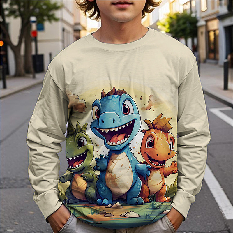 Boys' 3D Dinosaur Sweatshirt Long Sleeve Spring Fall Fashion Basic Kids 4-12 Years Crew Neck Outdoor Casual Daily Regular Fit