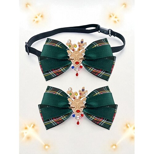 Set di papillon natalizio da donna con renna, fiocco di nastro scozzese rosso con ciondolo a forma di cervo con strass, elegante accessorio per le feste natalizie da donna ragazze
