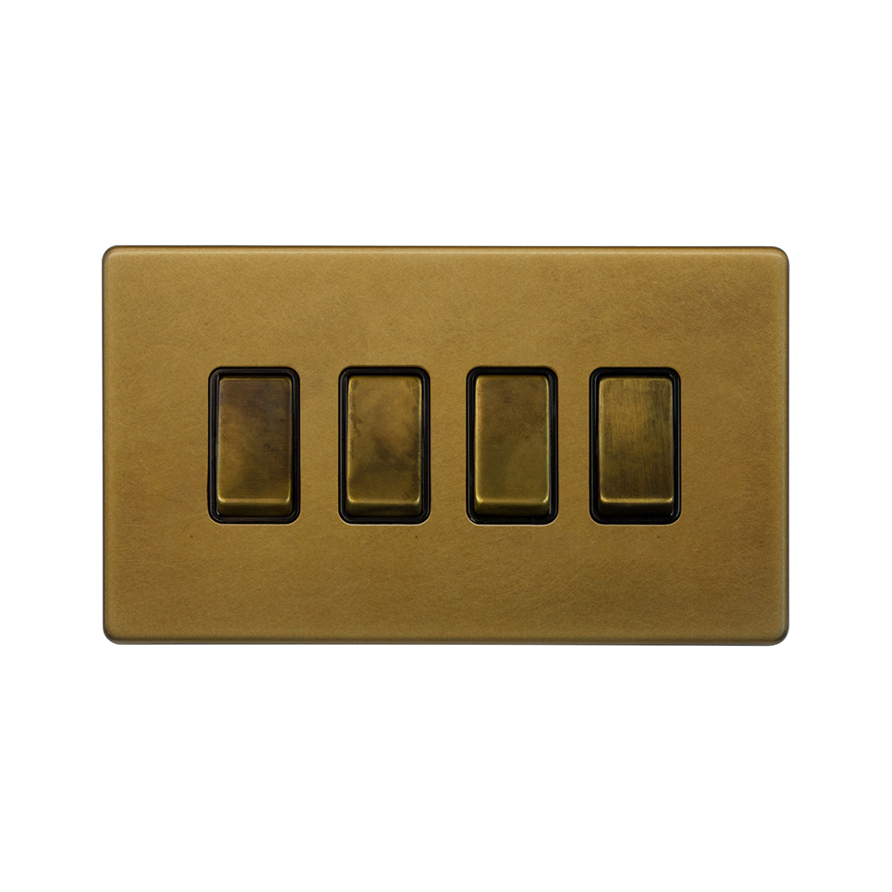 Soho Lighting Old Brass 4 Gang Switch With 1 Intermediate (3 x 2 Way Switch with 1 Intermediate)