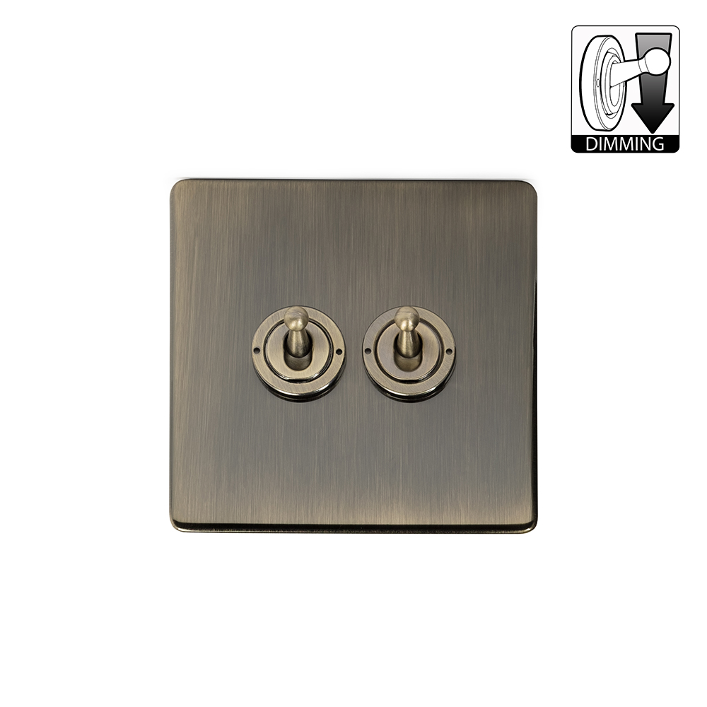 Soho Lighting Antique Brass 2 Gang Dimming Toggle Switch