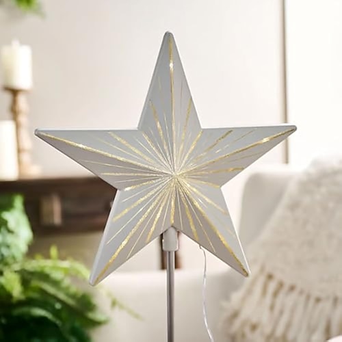 Puntale per albero di Natale con stella e pan di zenzero, puntale per albero in resina a 5 punte, stella con timer automatico, adatto a tutte le dimensioni degli alberi, regalo elegante per la casa, decorazioni per feste e magia natalizia
