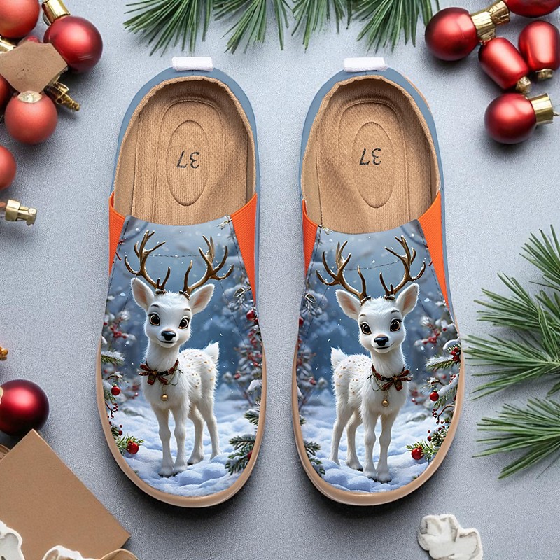 Women's Wide Toe Reindeer Canvas Travel Shoes – Cute Christmas Walking Shoes, Perfect for Holiday Travel and Winter Streetwear