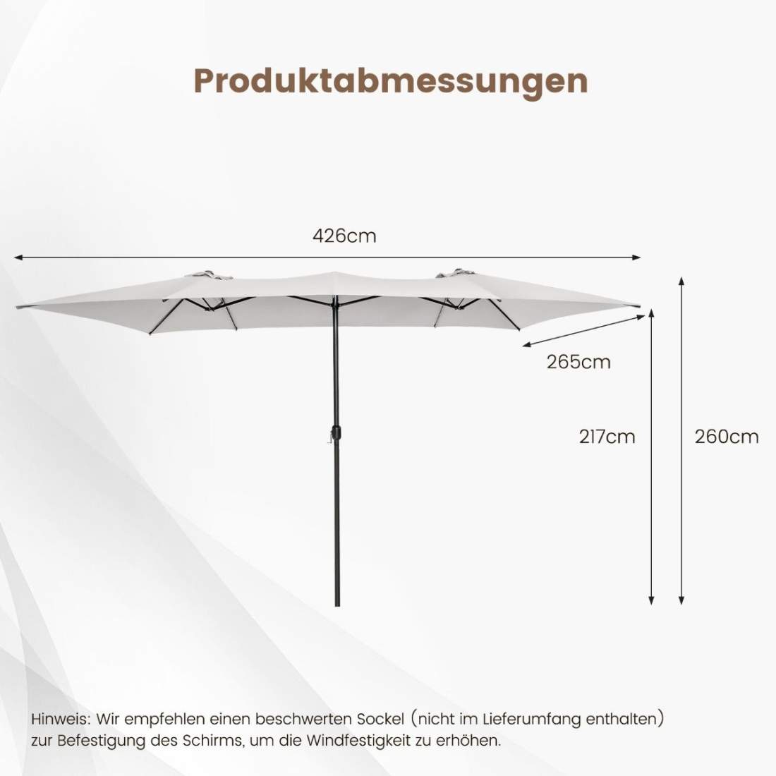 Tupla-aurinkovarjo 426 x 265 cm suorakaiteen muotoinen aurinkovarjo UV-suoja beige