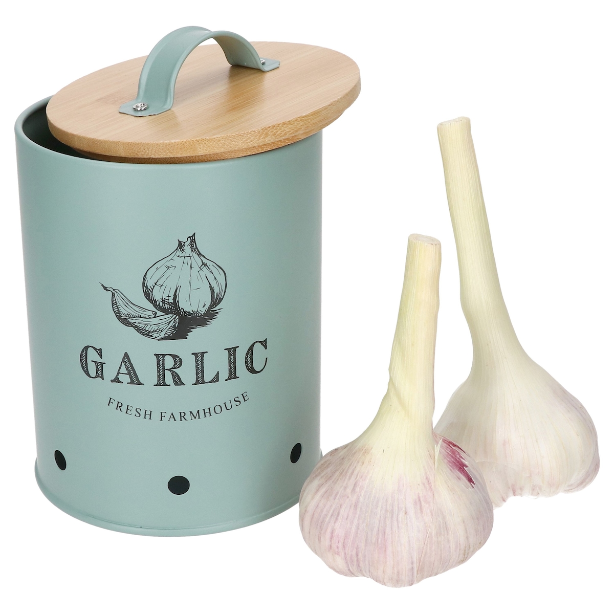 Knoblauchtopf Fresh Metall-Dose mit Bambusdeckel mint Vorratsdose mit Löchern