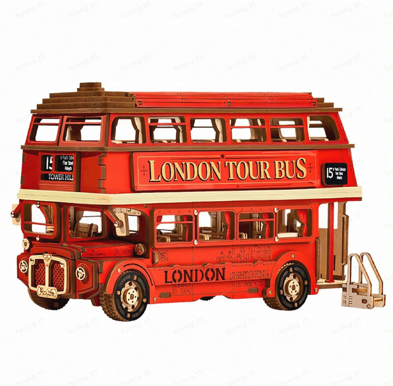 Robotime Rolife London Tour Bus Wooden 3D Puzzle Building Toys 19.4 x 7.8 x 11.3 cm 1PC